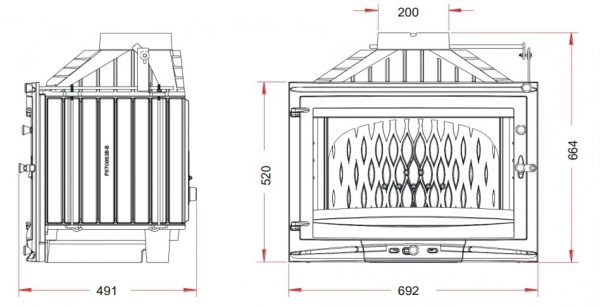 Focar fonta Selenic 700 – dispune de un con inalt si de lamele radiante pe toti peretii acestuia, pentru a creste eficienta focarului prin marirea suprafetei de contact cu aerul si a prelungirii traseului gazelor de evacuare.