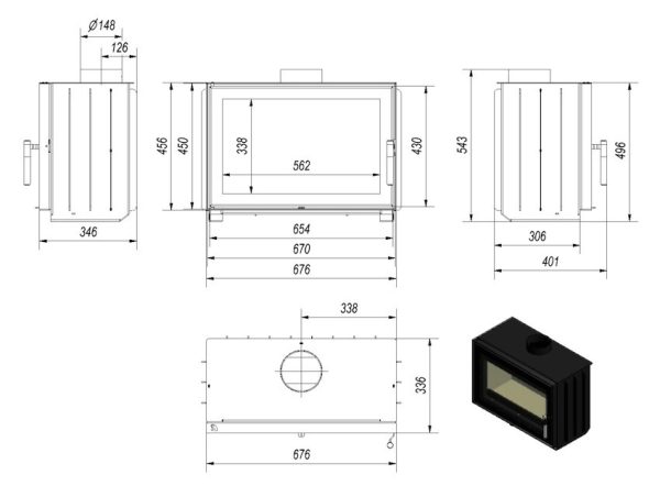 Incinta focarului cu lamele radiante pe peretii exteriori, fabricata din otel refractar de inalta calitate cu o compozitie ridicata de carbon pentru o rezistenta mare la temperaturi inalte.
