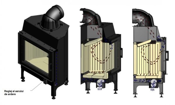 -arderea secundara amplasata pe partea din spate a vatrei. In plus a fost aplicat sistemul de curatare a sticlei cu aer (perdea de aer).
