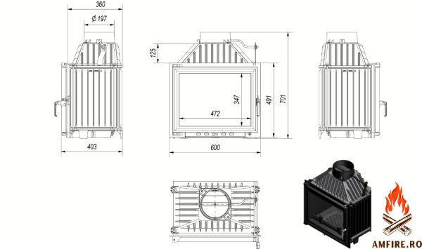 Peretii focarului sunt realizati din fonta refractara de inalta calitate din clasa 200 si o grosime mare de minim 8mm.